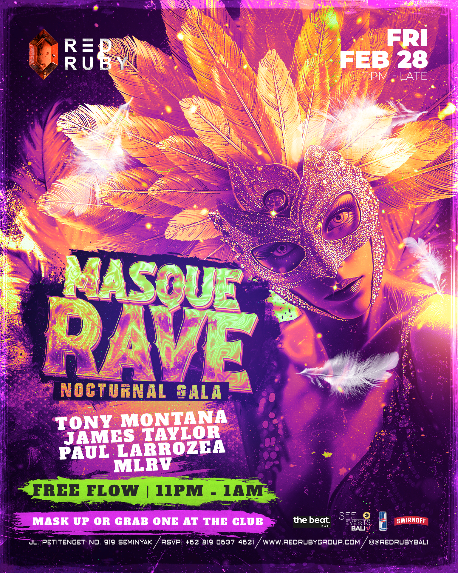 Unmask the night and let the carnival of beats guide you through a mesmerizing Masquerave! Join the ultimate carnival party only at @redrubybali ๐