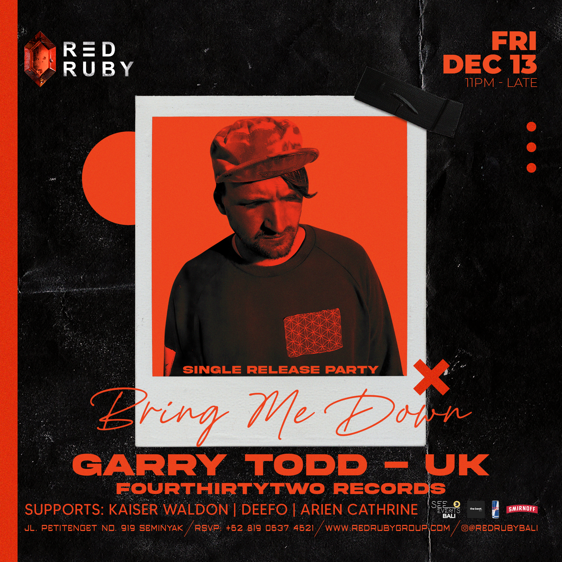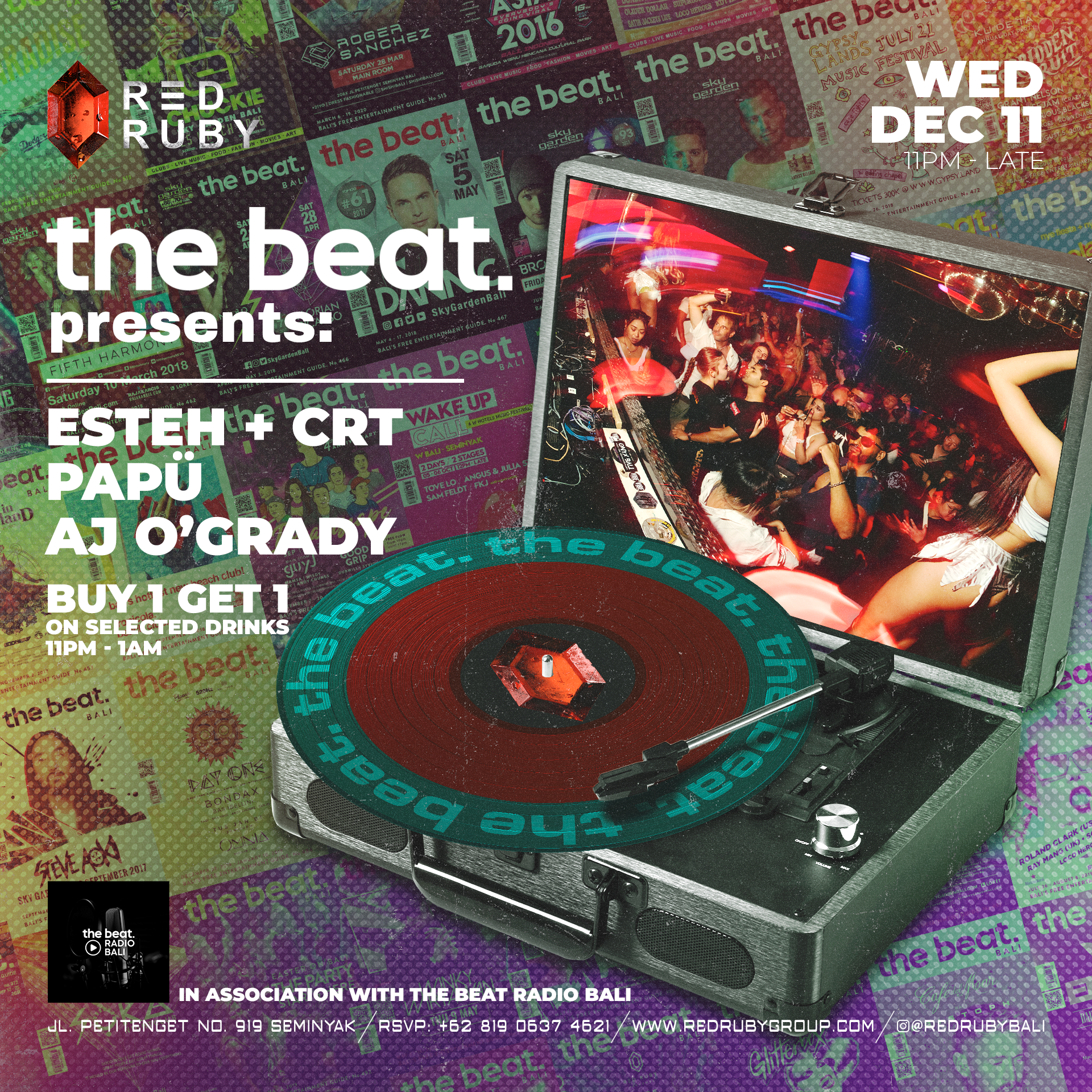 Biggest Tunes from the Bali Underground : The Beat Bali has been the bible for clubbers in Bali for the whole 21st century. Come join the unique sounds of The Beat taking over Red Ruby for a night of legendary House & Techno!
