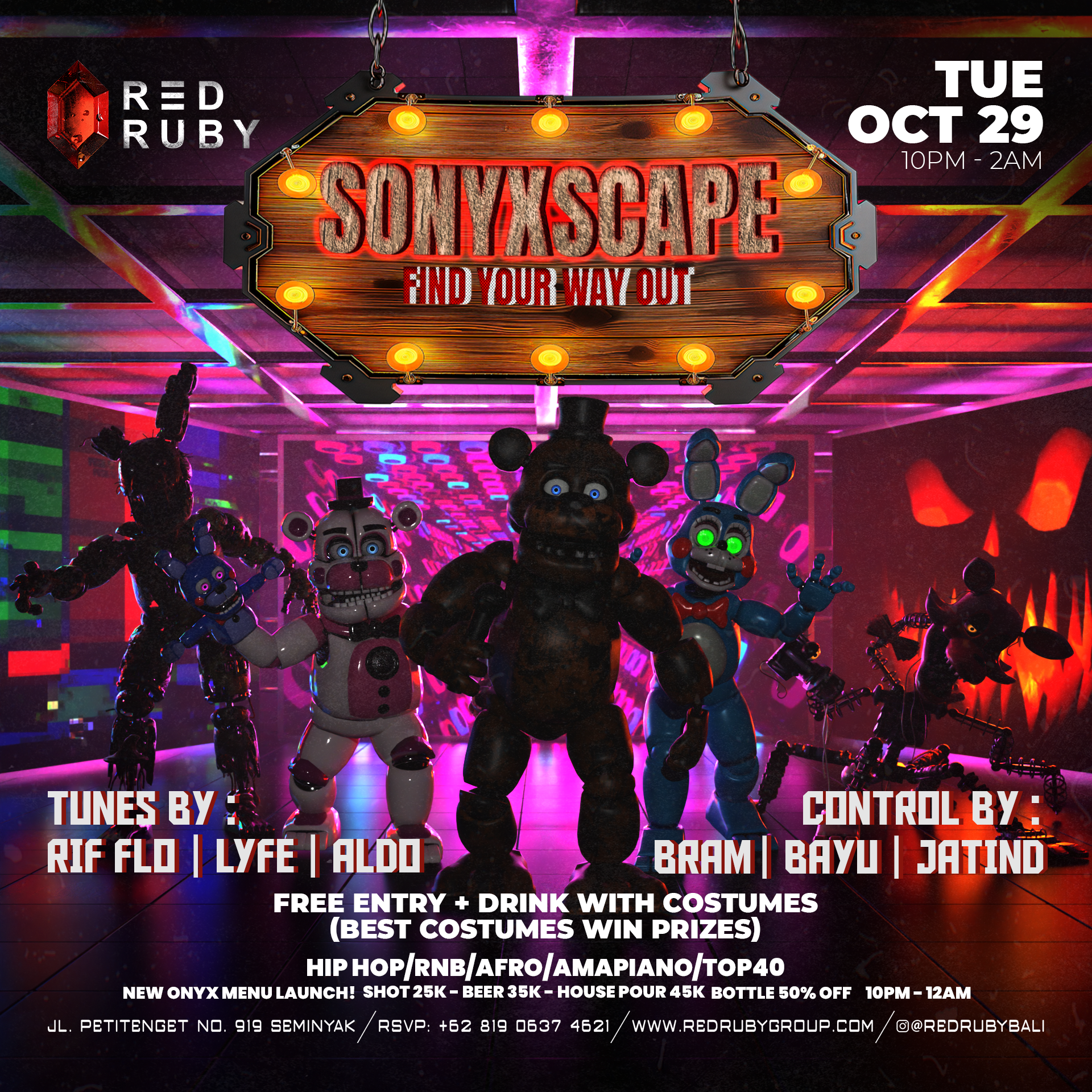 Enter SONYXSCAPE; Suit up, step in, and let the night carry you into another dimension. ๐ป๐ Brace yourself for an mind-bending night of beats, electrifying energy, and the wildest costumes in town! ๐ฅ