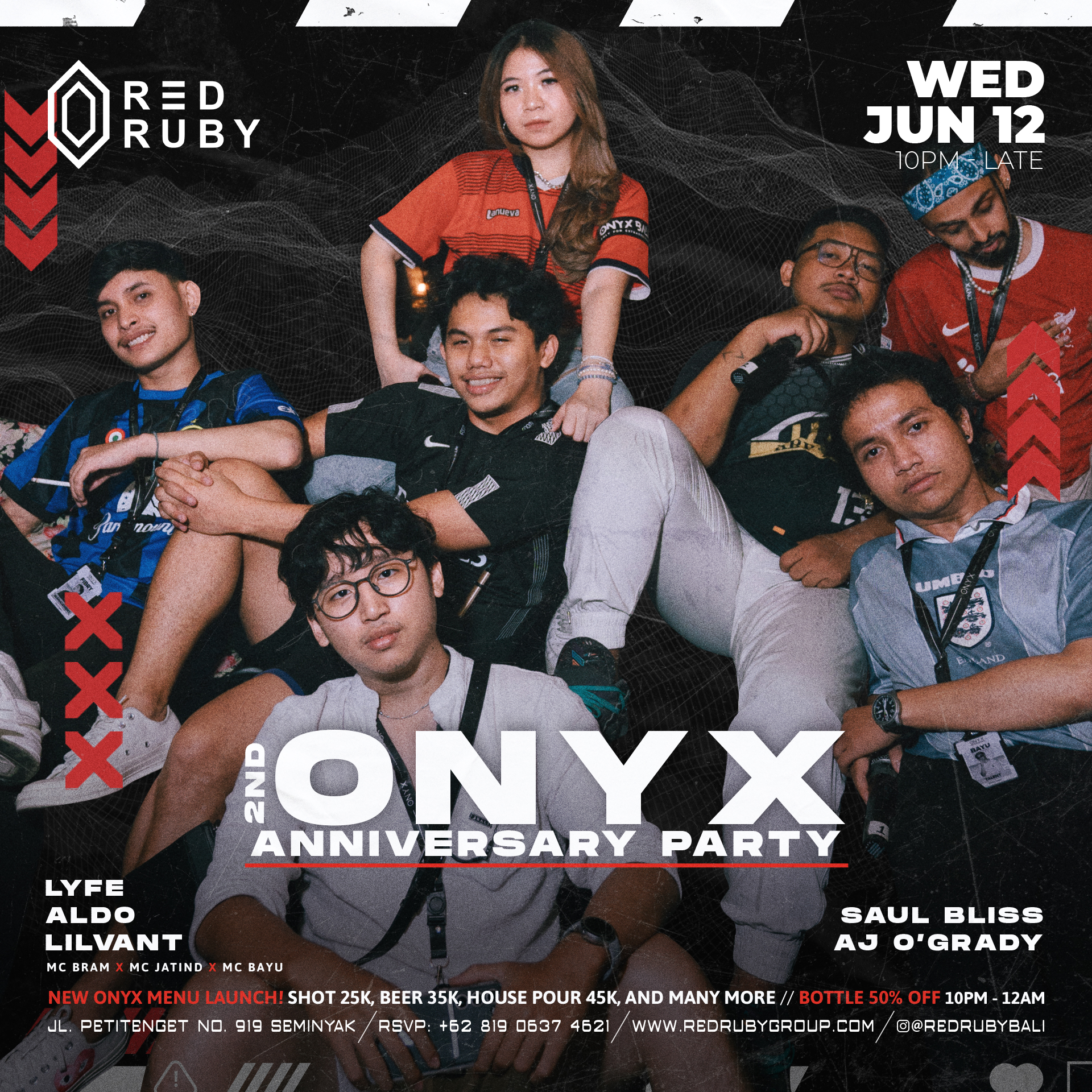 Two year of pure 𝗘𝗫𝗧𝗥𝗔𝗢𝗥𝗗𝗜𝗡𝗔𝗥𝗬 vibes at Red Ruby ; celebrating @onyx.bali 𝟮𝗻𝗱 𝗔𝗡𝗡𝗜𝗩𝗘𝗥𝗦𝗔𝗥𝗬 with friends, beats, endless dancing, and unforgettable moments!