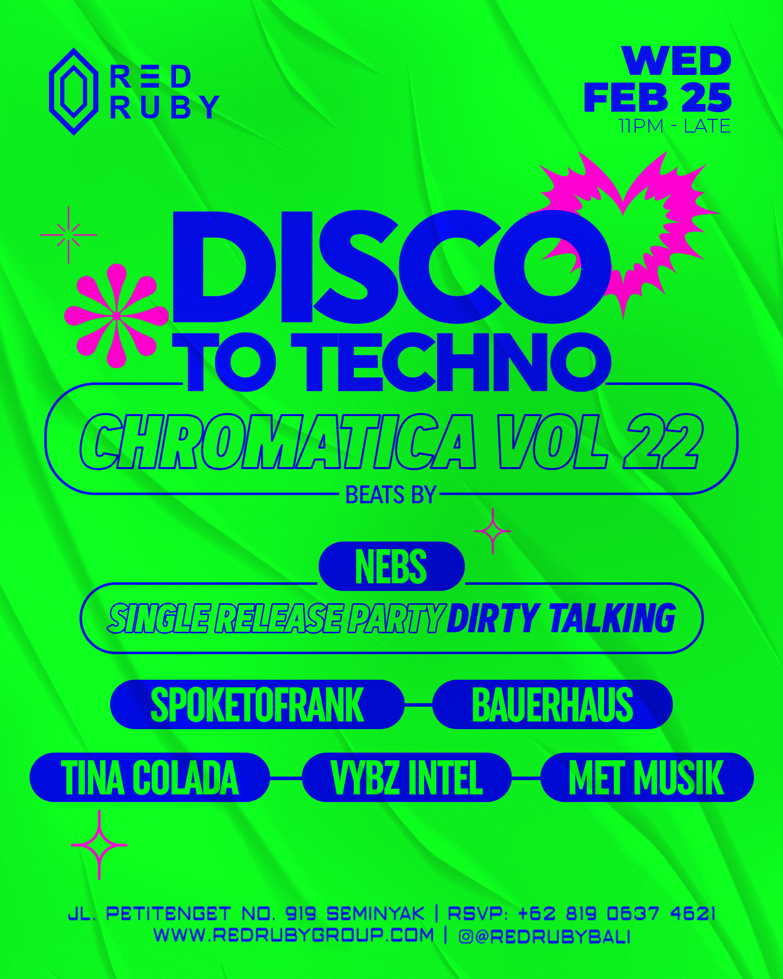 @chromaticabali brings you a night where disco grooves evolve into deep techno pressure โ a space to express, connect, and lose yourself in the sound.