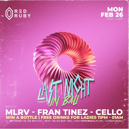 Let’s make it a night to remember, dancing to the beats of Afro House and connecting with the vibrant energy of the crowd! only at @redrubybali
