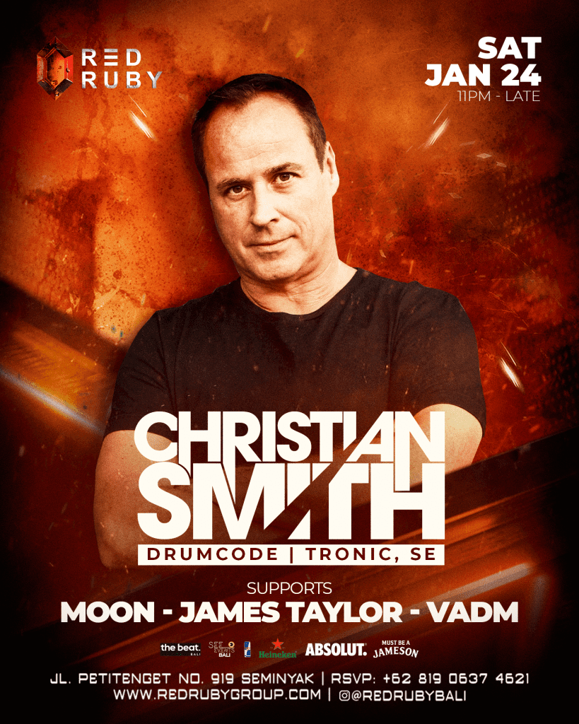 @christiansmithofc , a leading techno DJ and producer, has been at the forefront of the genre for over a decade with his innovative, groovy techno. Swedish-born but Frankfurt-raised, he has played in top clubs worldwide and founded the influential label Tronic, known for dominating charts and releasing groundbreaking music. With a syndicated weekly radio show, popular streams, and collaborations with major artists like Stormzy, Christian continues to shape the techno scene. His landmark albums and successful Ibiza nights further cement his legacy!
